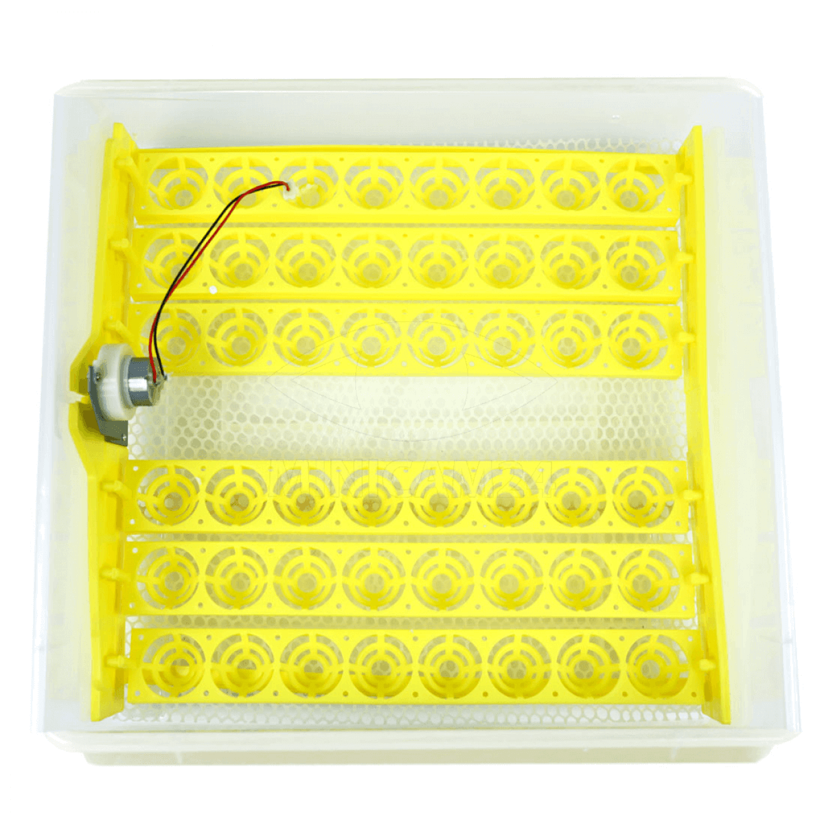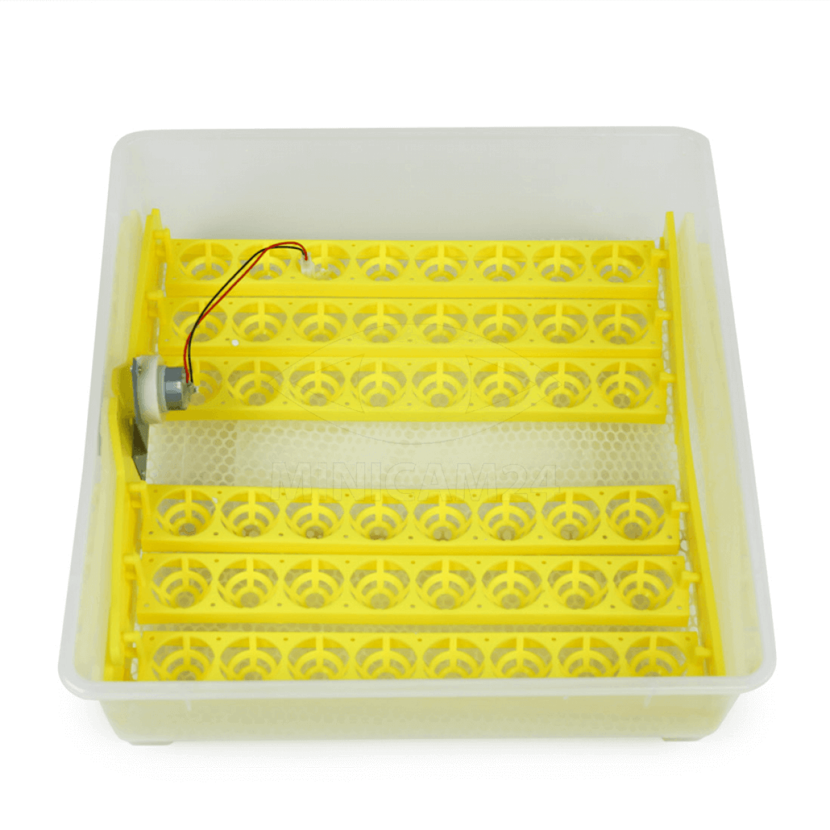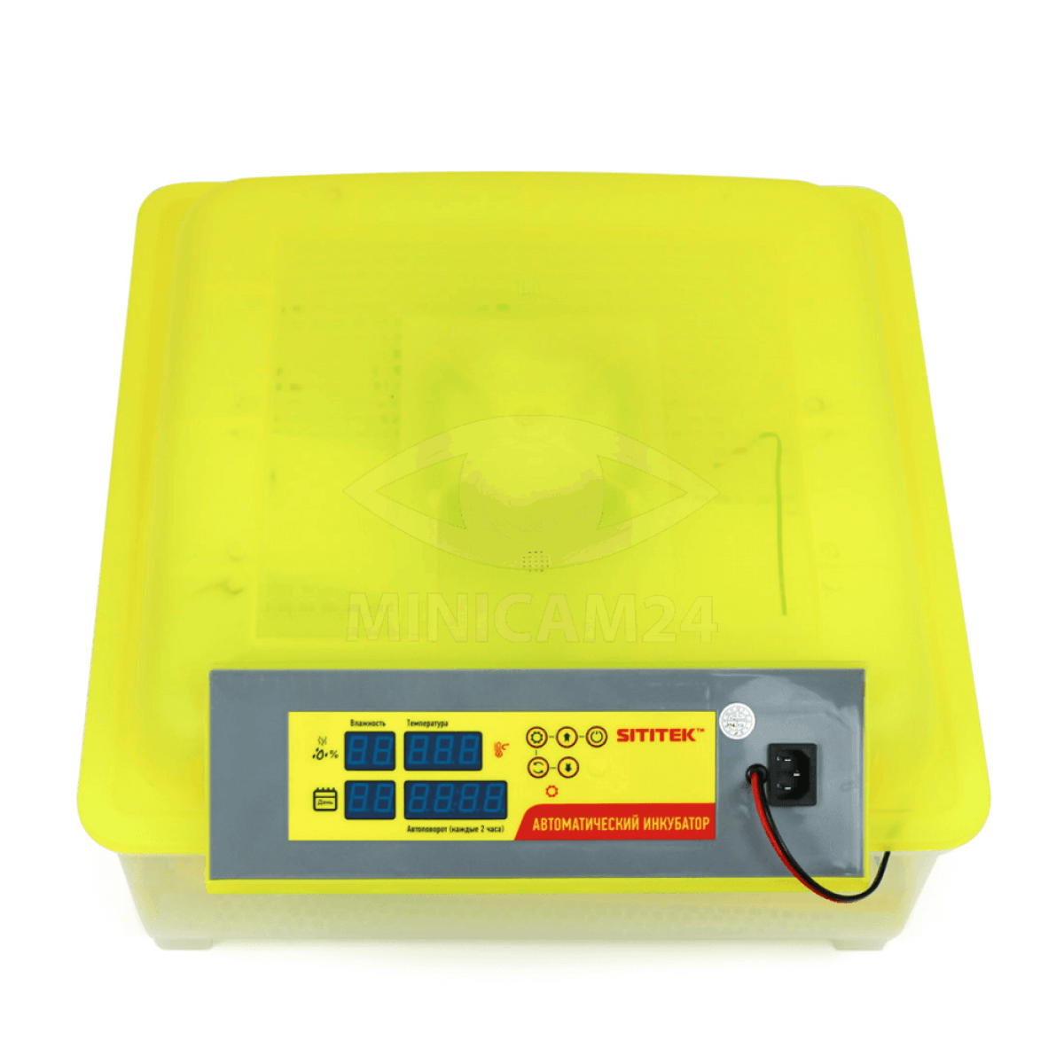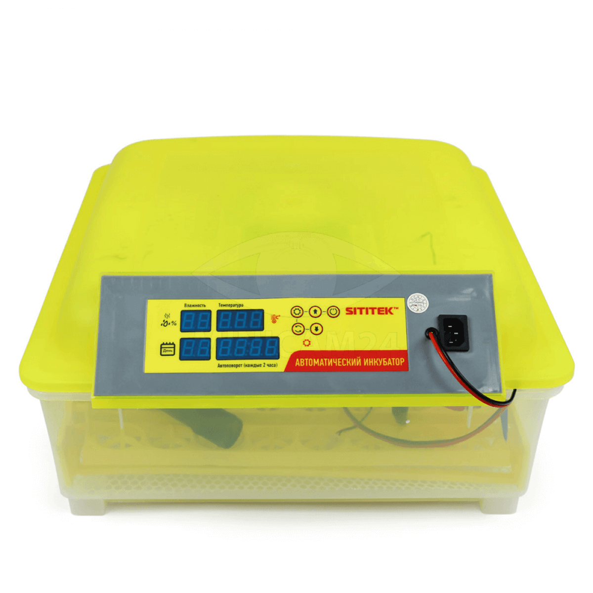 Полностью автоматический инкубатор на 48 яиц. Инкубатор выполнен в прозрачном пластмассовом корпусе и оснащен компьютерной системой управления внутренним микроклиматом. Лотки с яйцами автоматически поворачиваются. Постоянно автоматически отслеживается заданная температура и влажность. При выходе этих параметров за установленные значения срабатывает звуковая сигнализация. Прибор оснащен системой резервирования питания от внешней аккумуляторной батареи напряжением 12 Вольт (не в комплекте). Настройки инкубатора отражаются на большом ЖК дисплее и сохраняются в энергонезависимой памяти. При кратковременном пропадании питания или при переходе на резервный источник питания все настройки сохраняются.