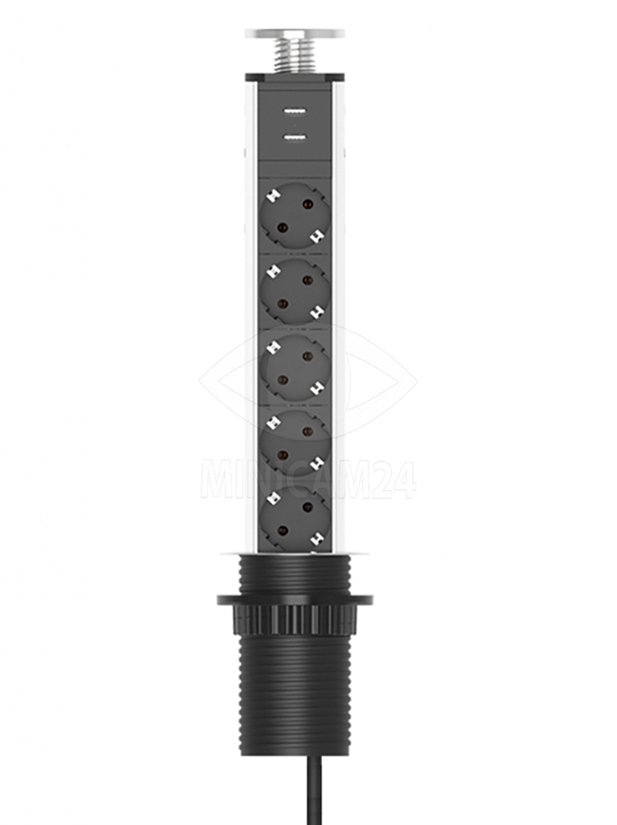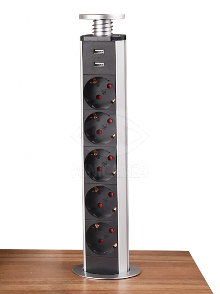 Встраиваемая выдвижная розетка CorePort (5 розеток, 2 USB-A, 1.8м кабель)